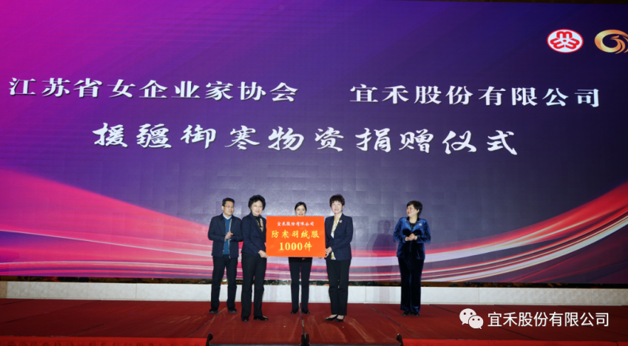 活動現場,市女企業家協會會長、宜禾股份有限公司董事長馬金芳率先響應“益創·聚能環”情暖婦兒行動,委托省女企協向新疆定向捐贈價值60萬元的御寒物資,同時向揚中困境婦女兒童捐贈200件棉衣,累計捐贈總額達到80萬元。